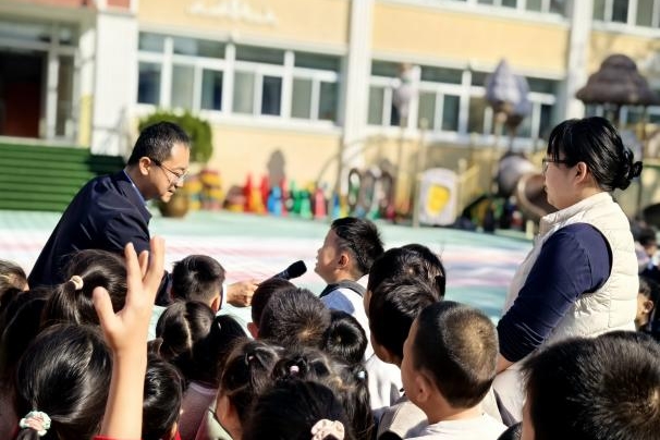 演练结束后,附属幼儿园党支部书记司涛对本次活动进行了现场讲评,肯定了师生们在演练中的沉着表现和快速反应,同时也指出了需要改进的细节。随后,司涛化身“安全讲师”,用通俗易懂、生动形象的语言,向全体教师和幼儿普及了基本的消防安全知识。在互动提问环节,孩子们踊跃举手,“火警电话是多少?”“着火了能不能坐电梯?”面对一个个问题,孩子们争相回答,在寓教于乐的互动中进一步巩固了所学知识。