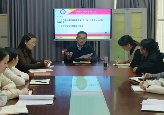 安保主任刘阳传达了淄川区教体局《关于进一步做好校园消防安全工作的通知》,并组织学习了《江西新余佳乐苑临街店铺“1·24”特别重大火灾事故调查报告》,通过学习报告,使大家深刻认识到消防安全无小事,必须做到警钟长鸣,防患未然。