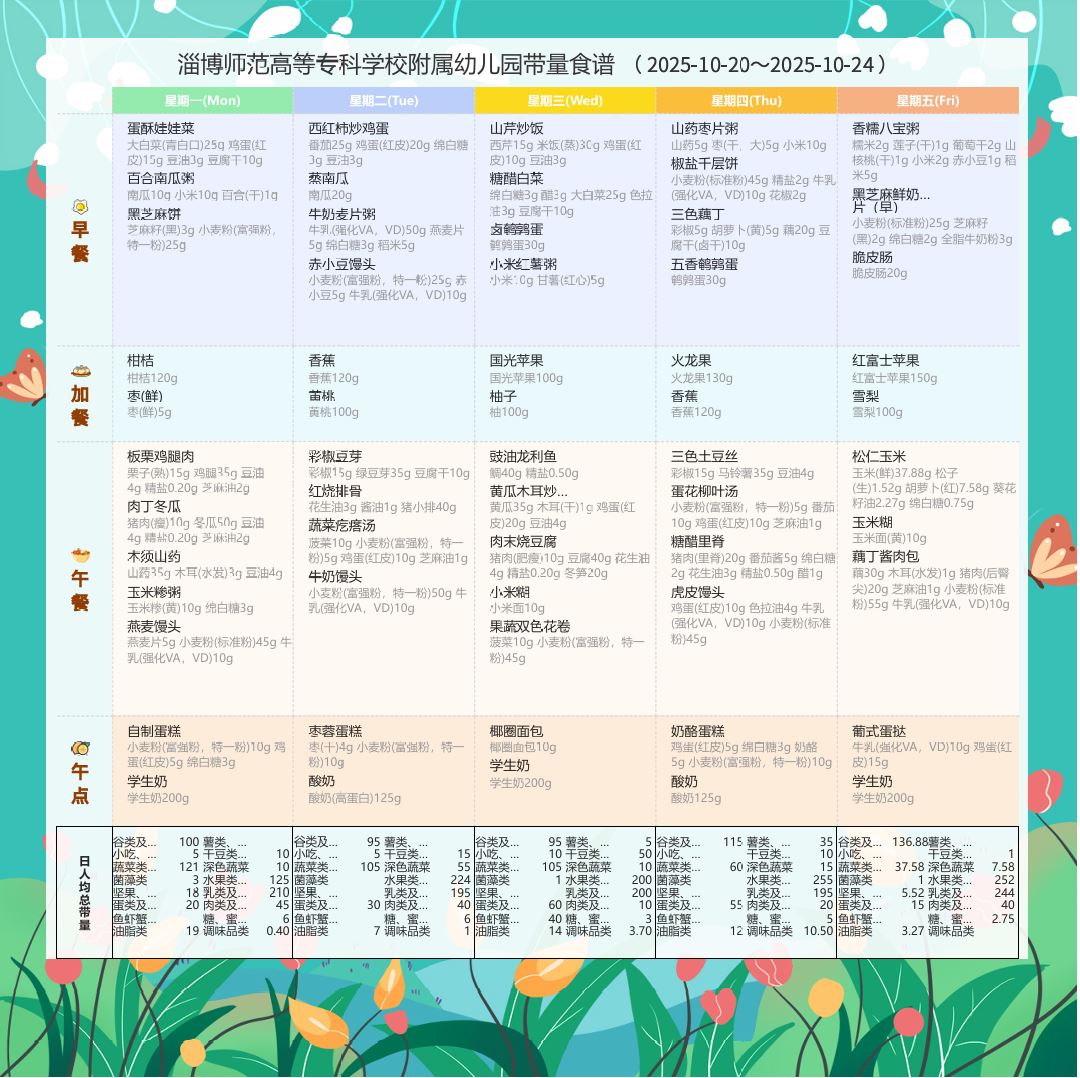 专业营养师定制|淄博师专附属幼儿园一周科学食谱抢先看(10.20-10.24)