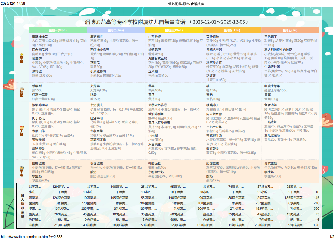 专业营养师定制|淄博师专附属幼儿园一周科学食谱抢先看(12.1-12.5)