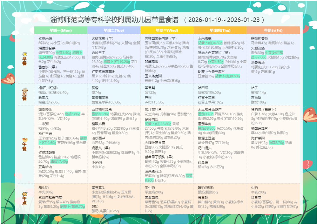 专业营养师定制|淄博师专附属幼儿园一周科学食谱抢先看(1.19-1.23)