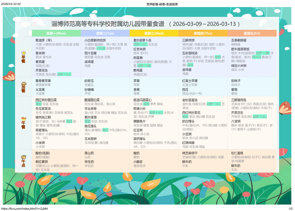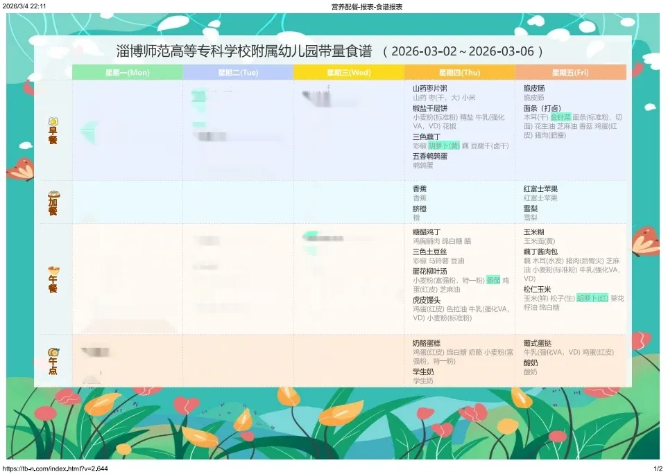 专业营养师定制|淄博师专附属幼儿园一周科学食谱抢先看(3.5-3.13)
