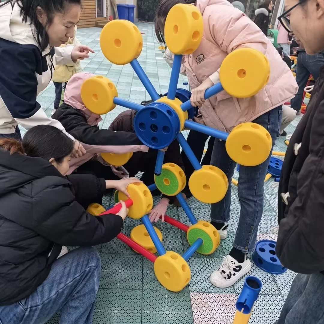 老师们在搭建、尝试、调整的过程中,将专业、创想、趣玩和锻炼高度融合,把一个个零件变成了一组组有趣、益智的自主游戏材料,这些材料既可以兼顾幼儿不同年龄的玩法,又可以满足幼儿集运动、科学、探索等多方面的发展需求。