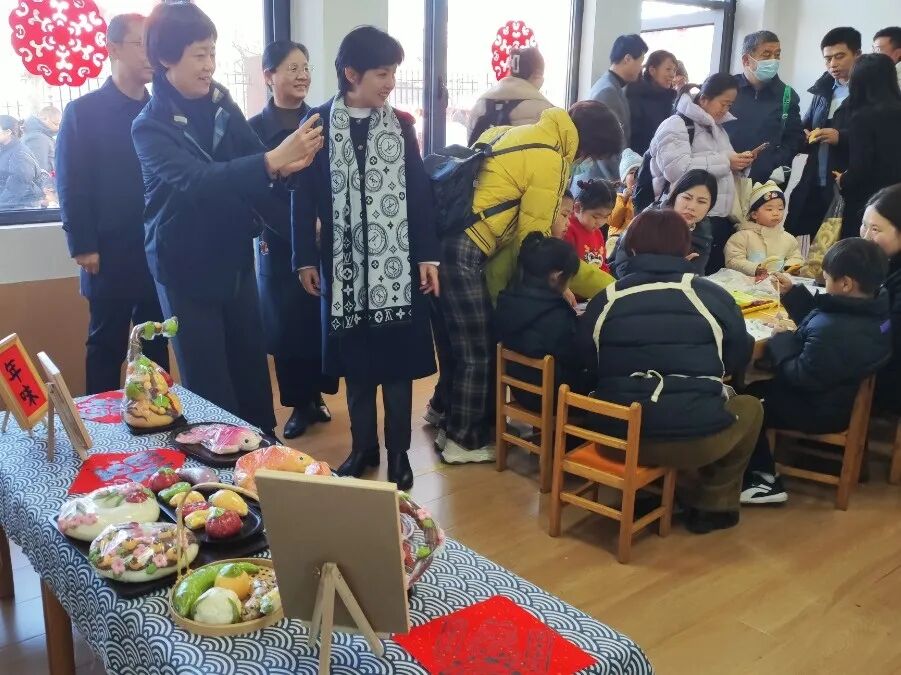 相传龙是祥瑞图腾,狮子是祥瑞之兽,舞龙舞狮常用来祈求生活吉祥如意;“鼓乐合奏”的乐声里,有古老的智慧,有今天的欢腾,更有向着未来的蓬勃生气;“五音戏”婉转灵动的唱腔,贴近生活的演绎,将传统戏曲艺术的魅力延续和传承。为了让孩子们亲身感受“庙会”的传统,特邀请了淄博师专“鼓乐队”和“五音戏团”的大姐姐们,还有山东水利技师学院“舞龙舞狮队”的大哥哥们,来到师专分园和我们一起开启“童趣庙会”的序幕!学前教育学院、美术系、体育系的师生们也深度参与,与孩子们互动,共同感受浓浓的年味。