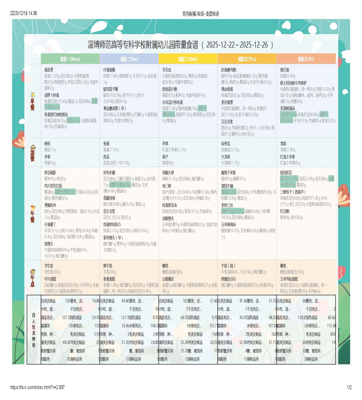 专业营养师定制|淄博师专附属幼儿园一周科学食谱抢先看(12.22-12.26)